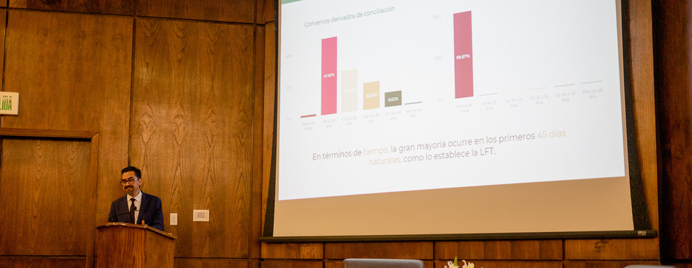 La ponencia de apertura del seminario fue a cargo del director general del CFCRL, Alfredo Domínguez Marrufo, quién durante su exposición subrayó el impulso en la justicia expedita a través del mecanismo de conciliación como método por excelencia para resolver los conflictos laborales e indicó que el 71 por ciento de los casos se resuelven por dicha vía.