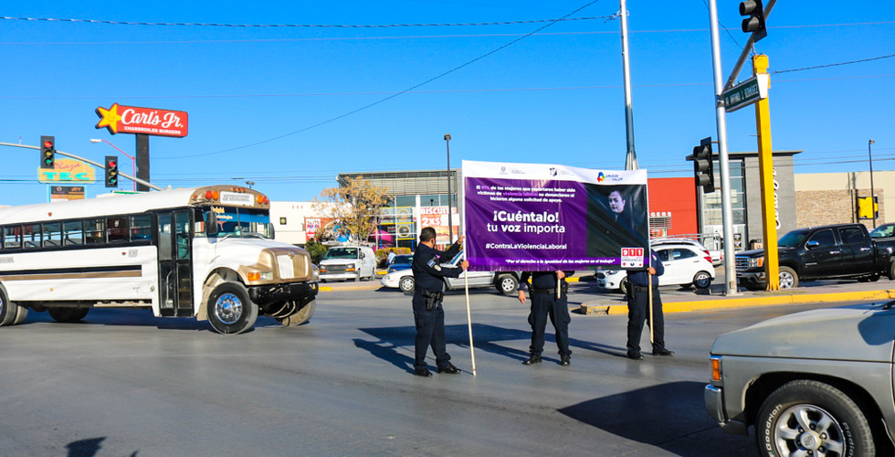 Con el objetivo de acercar a las mujeres trabajadoras y ciudadanía en general, la atención por parte del Gobierno del Estado ante casos de violencia laboral, las secretarías del Trabajo y Previsión Social (STPS) y de Seguridad Pública Estatal (SSPE) realizaron una activación en diversos cruceros de importantes parques industriales de Ciudad Juárez.